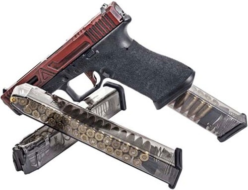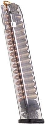 Elite Tactical Systems factory replacement magazine for glock 17,19,26,34 guns. This is a 31 round magazine made from impact resistant polymer. This gun magazine will not crack when dropped and is resistant to chemicals. Translucent body allows you to easily view ammo. This magazine uses the same material and spring size as glock oem magazines. Fits Gen 3 and Gen 4 models. FREE shipping on orders over $75! Orders shipped within 24 hours except week-ends and holidays. Gunclip Depot has the largest selection of Glock Magazines. If you do not see the gun magazine you are looking for send us an email and we will try to locate it for you.