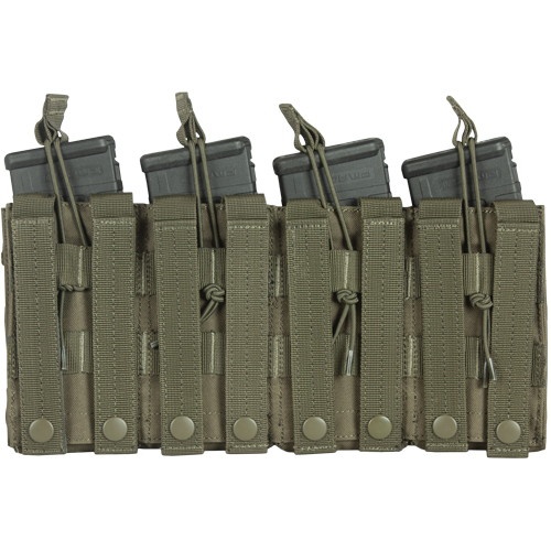 Open-top design for rapid deployment in the most extreme situations. Modular straps on the exterior for gun cleaning. Can be used upside down or right side up. Elastic cord to keep mags in place. Size: 6.25″ x 13″ x 1″