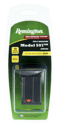 Here is a replacement magazine for Remington 597 guns. This is a 10 round Factory 22lr gun magazine. Made from heat treated stainless steel and has a black polymer base and an high visibility orange follower. Made to the same tolerances as the original magazines that were shipped with your gun. FREE shipping on orders over $75! Orders shipped within 24 hours except week-ends and holidays. Gunclip Depot has the largest selection of Remington Magazines . If you do not see the gun magazine you are looking for send us an email and we will try to locate it for you.