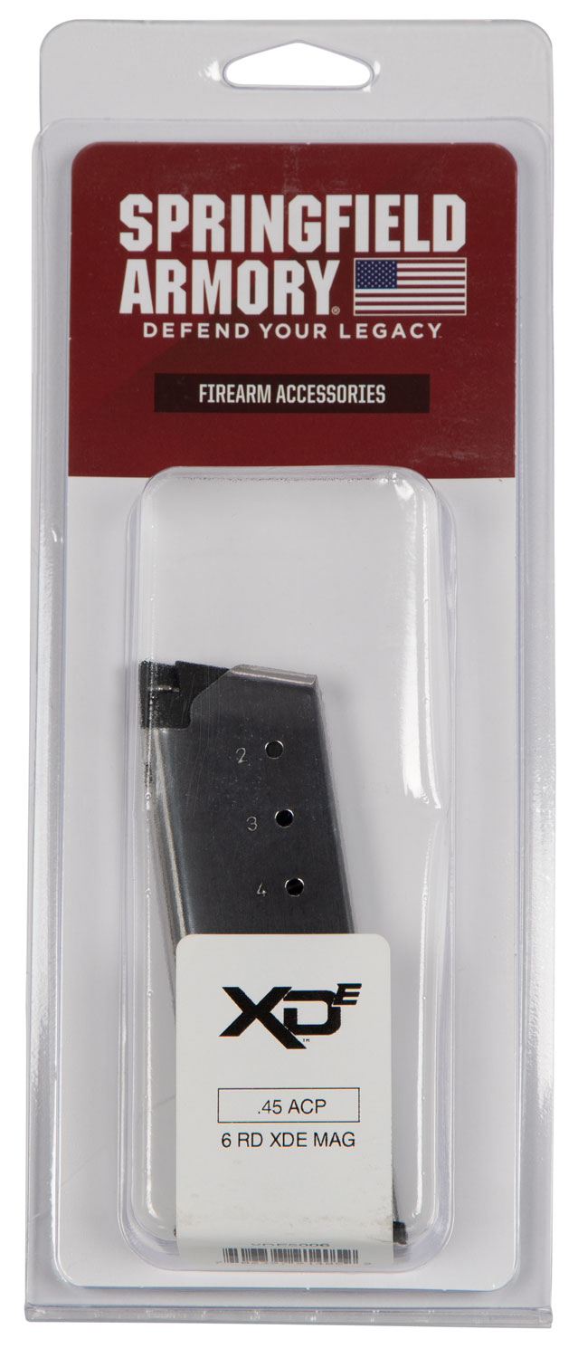 This is a new replacement magazine form Springfield Armory for the Model XD-E .45 acp guns. This is a 6 round stainless steel magazine made in the same factory as the magazines that came with the gun. This factory replacement magazine is original equipment and it is manufactured using the same manufacturing process as the magazines that shipped with the gun originally ensuring perfect fit and operation. When you choose Springfield Armory magazines you are getting the same quality materials and precise manufacturing as the magazines originally supplied with your firearm. FREE shipping on orders over $75! Orders shipped within 24 hours except week-ends and holidays. Gunclip Depot has the largest selection of Springfield Armory Magazines . If you do not see the magazine you are looking for send us an email and we will try to locate it for you.