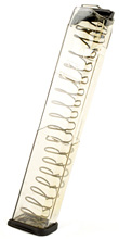This an Elite Tactical Systems 30 round wo S&W replacement magazine for Glock 22 guns made to the same tolerances as the Glock 22 factory original magazines. This ETS magazine features extreme impact resistance” creep resistant feed lips and a translucent body that allows you to see your ammo count and type. It is compatible with Glock and aftermarket floorplates. FREE shipping on orders over $75! Orders shipped within 24 hours except week-ends and holidays. Gunclip Depot has the largest selection of Glock 40 S&W Magazines. If you do not see the gun magazine you are looking for send us an email and we will try to locate it for you.